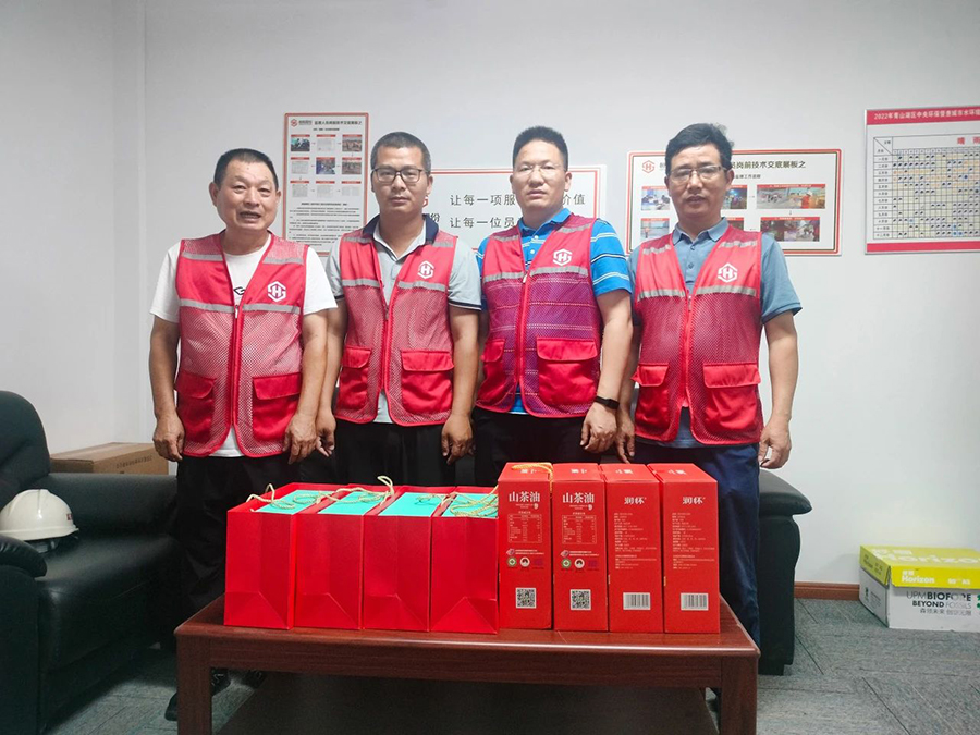 在项目一线福利发放现场上,一份份满载着企业关怀的中秋礼盒送到员工手中。大家的喜悦之情溢于言表,礼品提在手,情谊暖在心。
