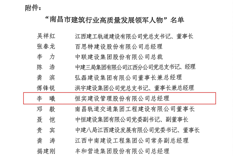 此次表彰是对恒实股份在南昌市建筑业领域实力的认可和肯定,未来,恒实股份将深入贯彻“加快构建新发展格局、着力推动高质量发展”精神,继续聚焦“走在前、勇争先、善作为”的目标要求,全力支持协会事业,促进协会创新工作精准服务,充分发挥行业示范引领作用,不断提升企业专业化、信息化、技术化水平,践行“做完美工程的守护者”使命,为推动省会南昌建筑业数字化转型和高质量跨越式发展贡献恒实力量。
