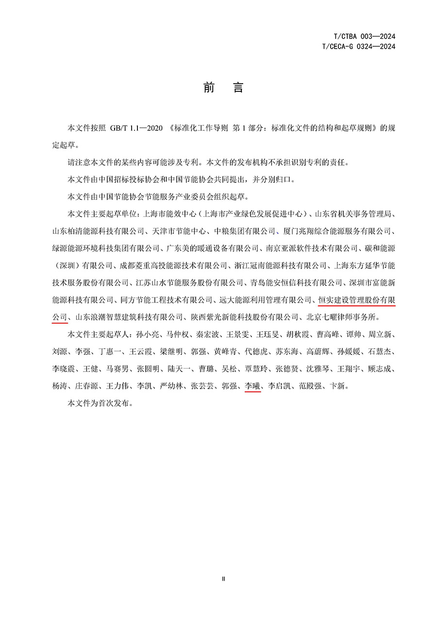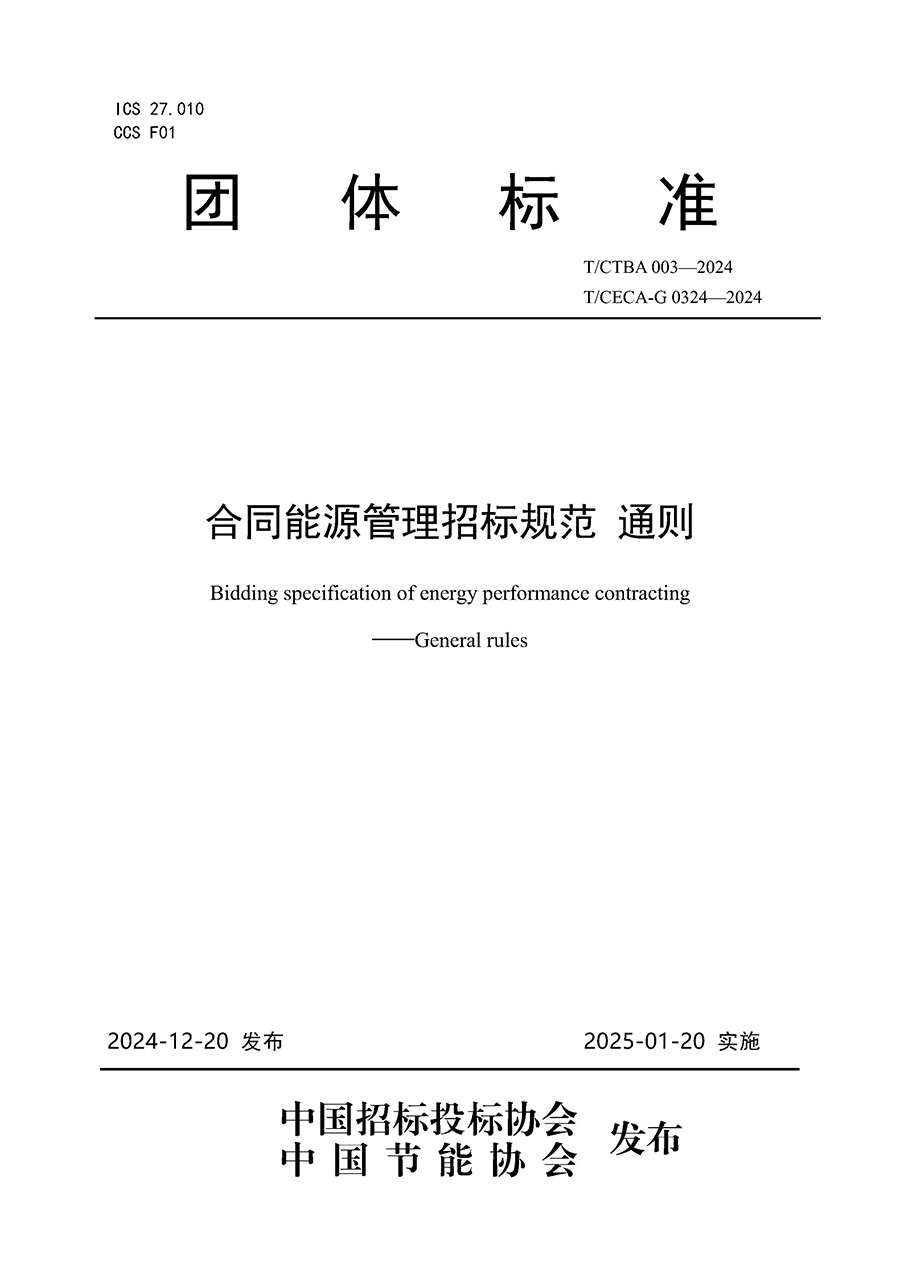 2024年12月20日,由中国招标投标协会、中国节能协会共同归口,中国节能协会节能服务产业委员会组织起草,由米兰官方网站作为主要起草单位参与的T/CECA-G 0324—2024《合同能源管理招标规范 通则》团体标准正式发布,自2025年1月20日起生效施行。